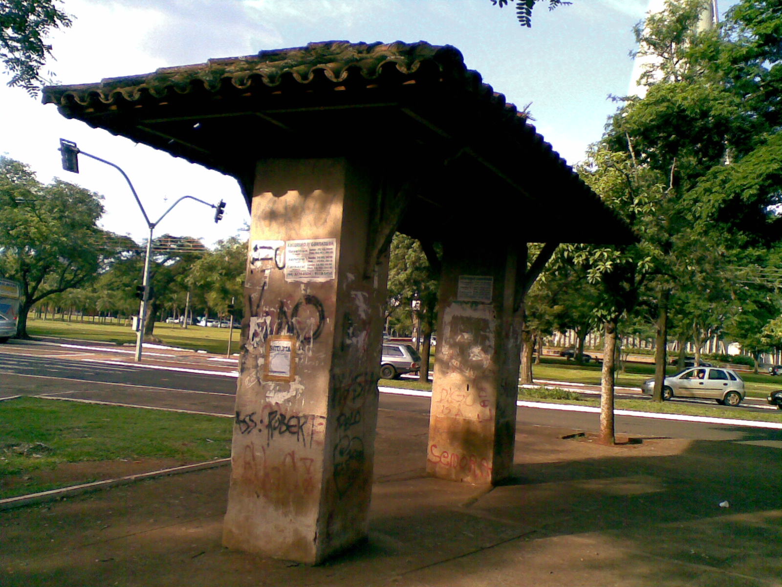 Esta espécie de portal que ainda sobrevive intacto em frente ao IEEM (Instituto de Educação Estadual de Maringá), data provavelmente dos anos de 1960. Na foto abaixo de 1966, já vemos a estrutura dividindo espaço com a Catedral, ainda em madeira.