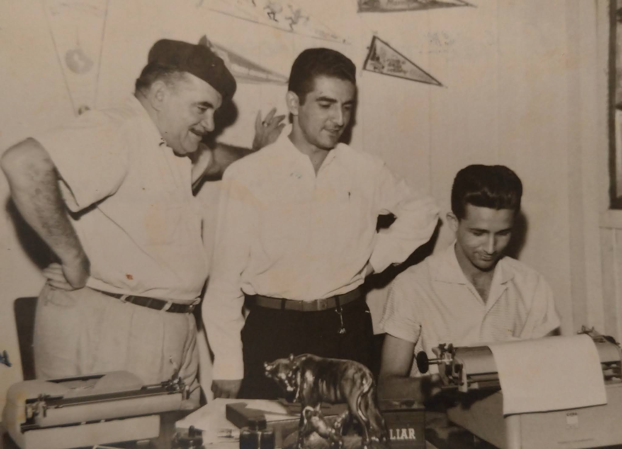Também estão na imagem Luís Carlos Borba (Borbinha), ao centro, e Antonio Augusto de Assis, na máquina de escrever.