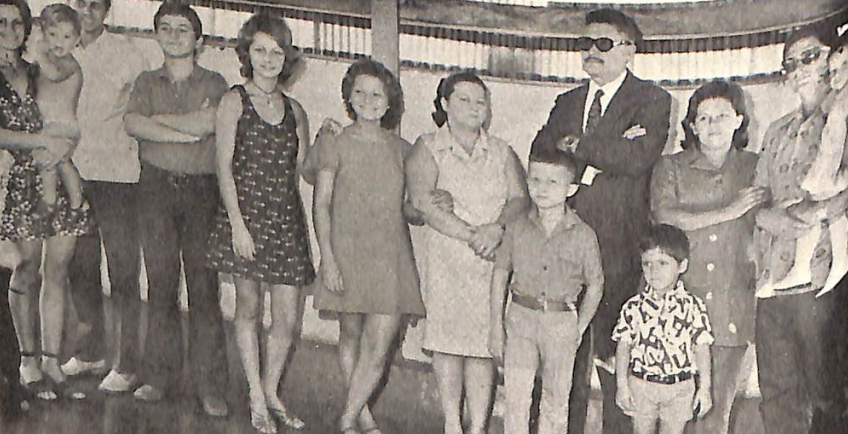 Ele aparece na imagem usando terno e gravata, óculos escuros e braços cruzados, ao lado dos familiares. Primo Monteschio faleceu a 19 de outubro de 1986. A rua de acesso ao cemitério municipal recebeu seu nome como forma de homenagem.