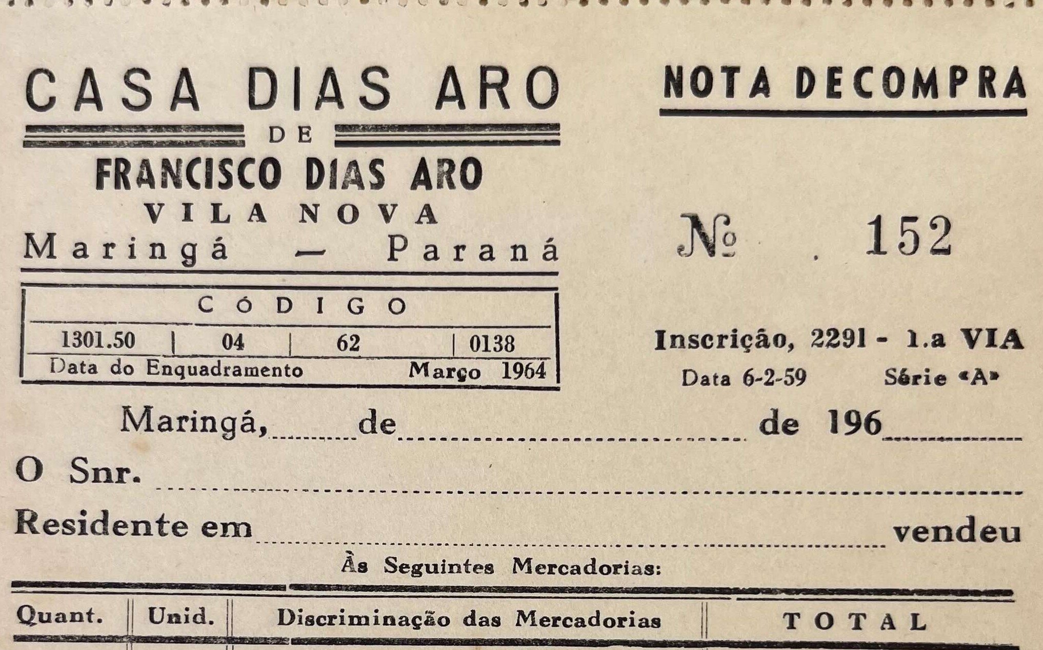 Fundada por Francisco Dias Aro (sentado à direita na primeira imagem, junto da esposa, Santa Silvestrin Dias, e familiares) em 6 de fevereiro de 1959, a Casa Dias Aro funcionou na rua Mitsuzo Taguchi, esquina com rua Simon Bolívar, até 1976. Comercializando diversos tipos de produtos, o estabelecimento — conhecido como “secos e molhados” — mantinha a residência de seus proprietários nos fundos do terreno comercial, conforme revela a segunda imagem.