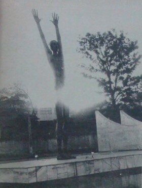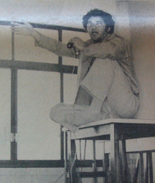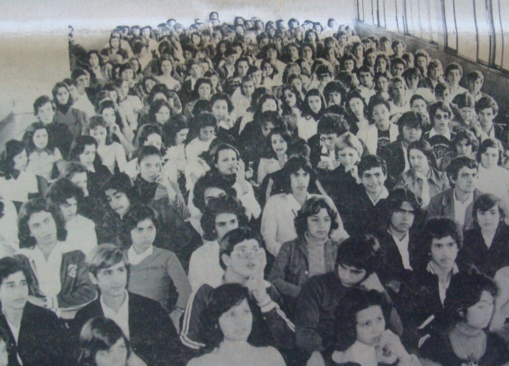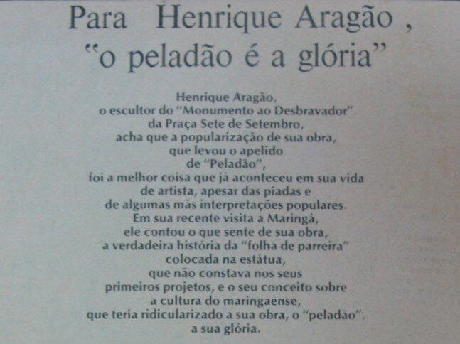 Autor do Monumento ao Desbravador, conhecido como “Peladão”, Joaquim Henrique de Aragão, o Henrique Aragão, esteve em Maringá para conversar com alunos sobre sua obra em outubro de 1974.