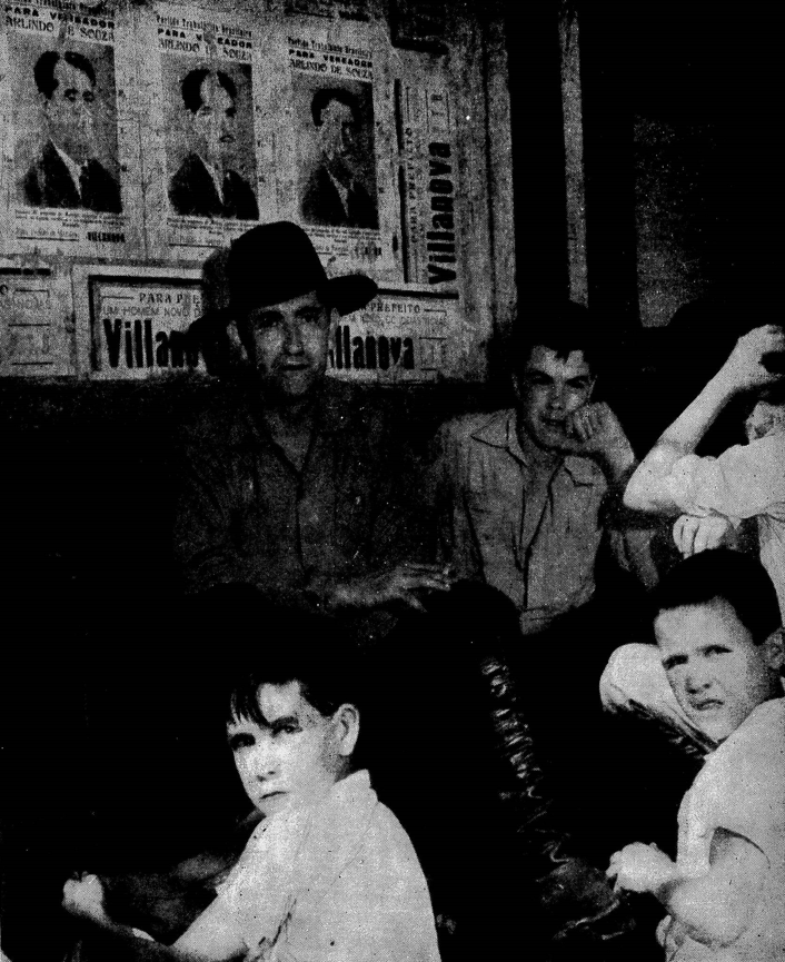 Feita em novembro de 1952, a fotografia mostra o empresário e político Napoleão Moreira da Silva tendo suas botas engraxadas por uma criança. Outros jovens prestam o mesmo serviço a demais clientes sentados ao seu lado.