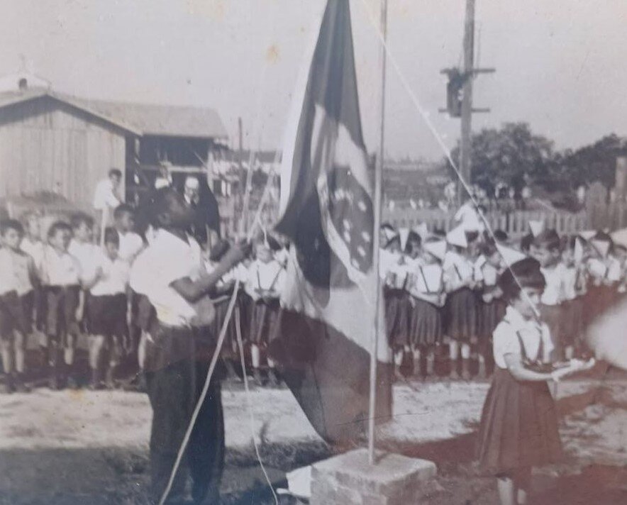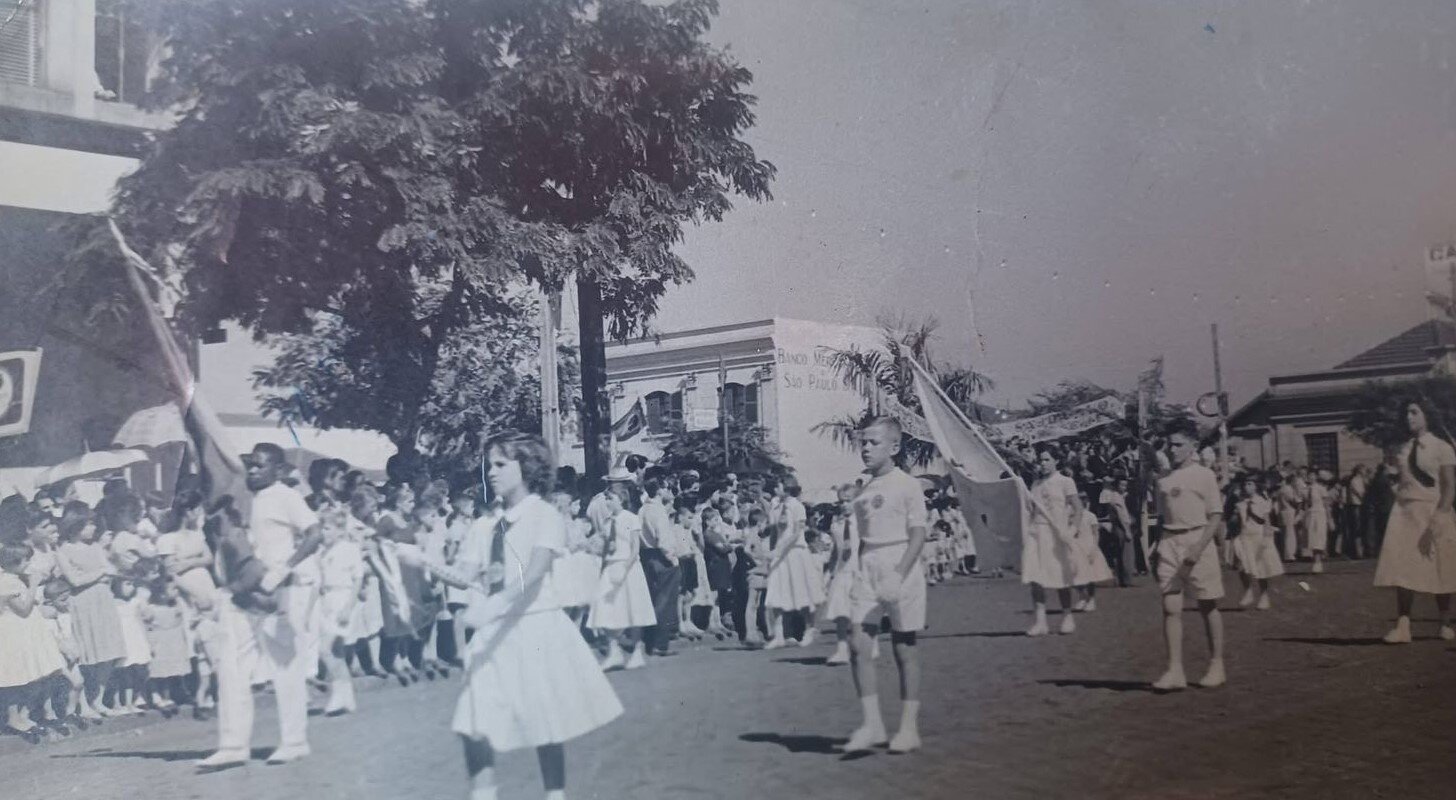 Conforme a primeira imagem sugere, o ato com o pavilhão nacional parece ter ocorrido no pátio do Colégio Santo Inácio, localizado na Zona 3 (Vila Operária). Os integrantes das alas que surgem circulando pelo centro da cidade também pertencem a essa mesma instituição. Entre eles está a aluna Mirtes Ribeiro, responsável por compartilhar estes registros históricos.