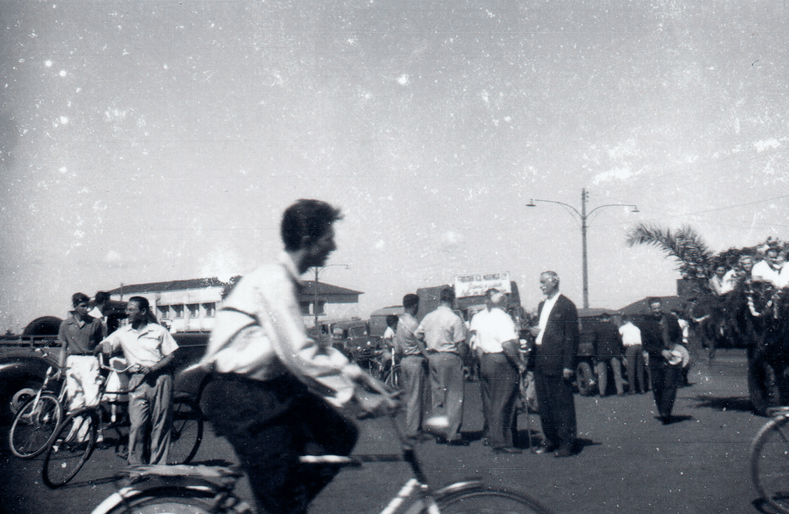 A segunda imagem indica se tratar das comemorações do aniversário de Maringá, uma vez que alguns dos carros aparecem decorados e com pessoas sobre suas carrocerias. Destaque para uma placa do Frigorífico Maringá, então fundado pelo alemão Reinold Ferdinandi Baudisch, em 1947.