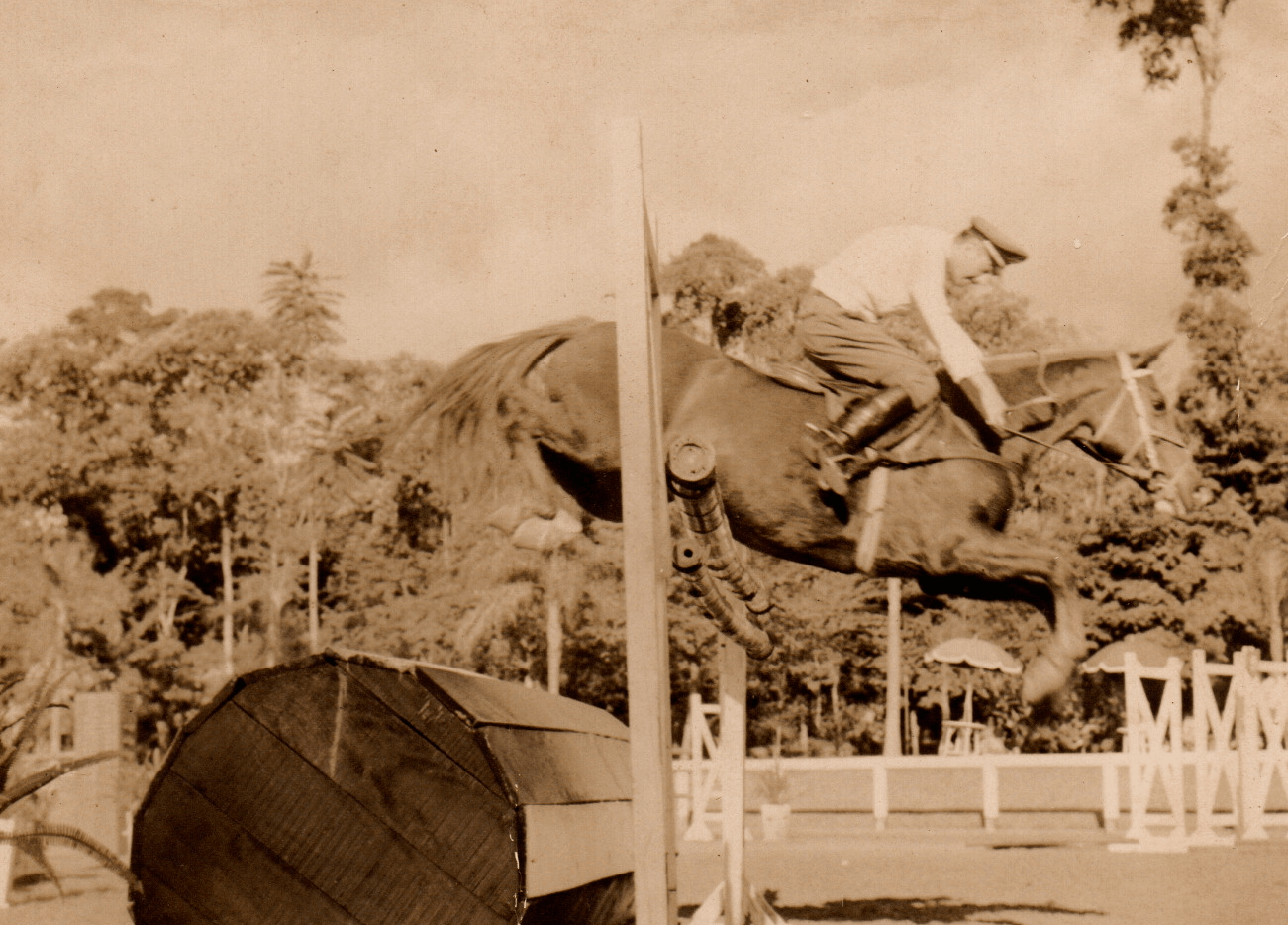 Datadas do final da década de 1950, as imagens mostram uma competição promovida no Clube Hípico de Maringá. Acompanhando as provas de salto de obstáculos, o público aparece reunido sob guarda-sóis, tendo ao fundo o salão social da entidade, caracterizado pela arquitetura rústica em madeira.