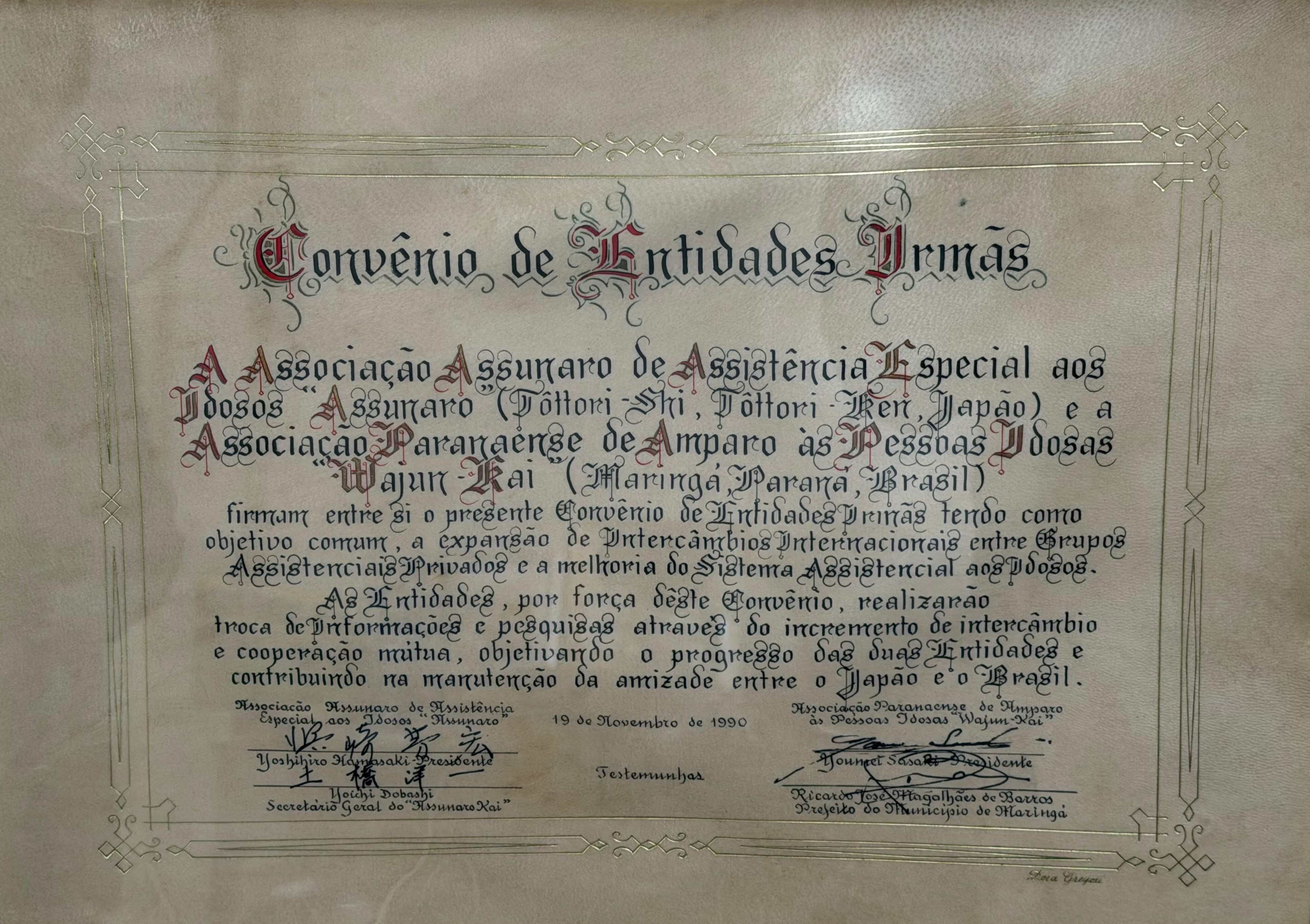 Em 1990, a Wajunkai estabeleceu vínculo de irmandade com uma instituição de mesmo gênero no Japão, localizada na cidade de Tottori. Trata-se da Associação Assunaro de Assistência Especial aos Idosos. O convênio entre as entidades foi firmado em 19 de novembro de 1990.